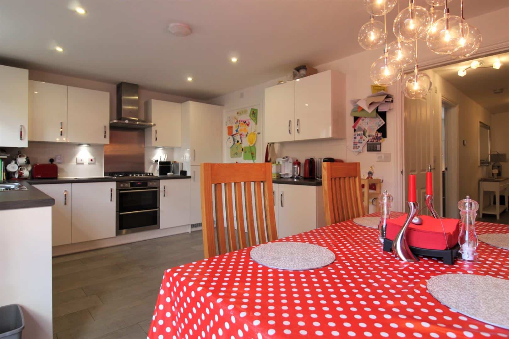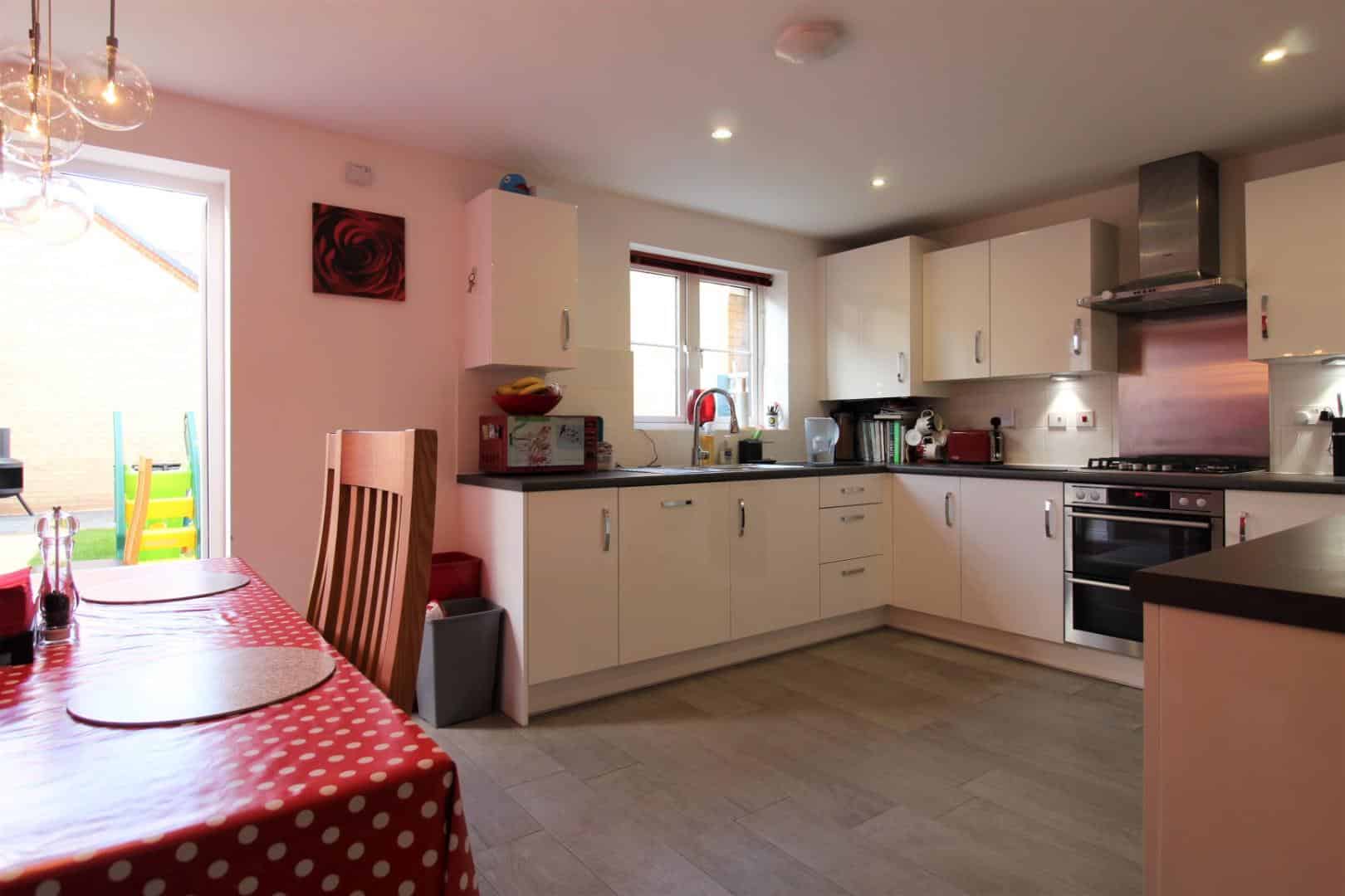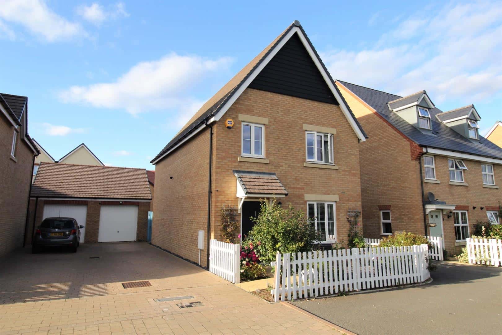 Latcham Dowling Estate Agents are delighted to offer for sale this extremely well presented four bedroom detached family home, situated at the end of this popular cul -de-sac and fronting on to a quiet walkway with views over the lower school playing fields. With a light and airy OPEN PLAN KITCHEN/ DINING ROOM (with integrated appliances) that provides direct access out to the enclosed rear garden, a lovely lounge, spacious entrance hall and a galleried landing, along with an en suite to the master bedroom, three further bedrooms and a family bathroom, this practical home is ideal for a family. In addition, there is a 19′ garage (with power and light) and driveway parking for two cars. Viewing is essential to really appreciate the lovely location and the proportions on offer!!!