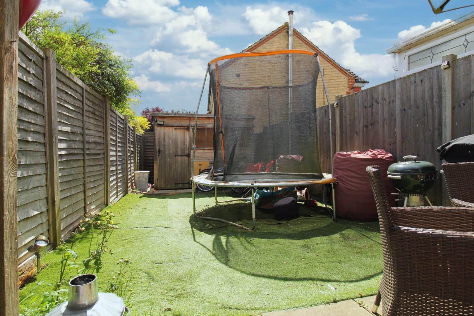 Enjoying a South, South Easterly aspect and enclosed by timber panel fencing, laid to an artificial lawn with paved patio area and pergola.