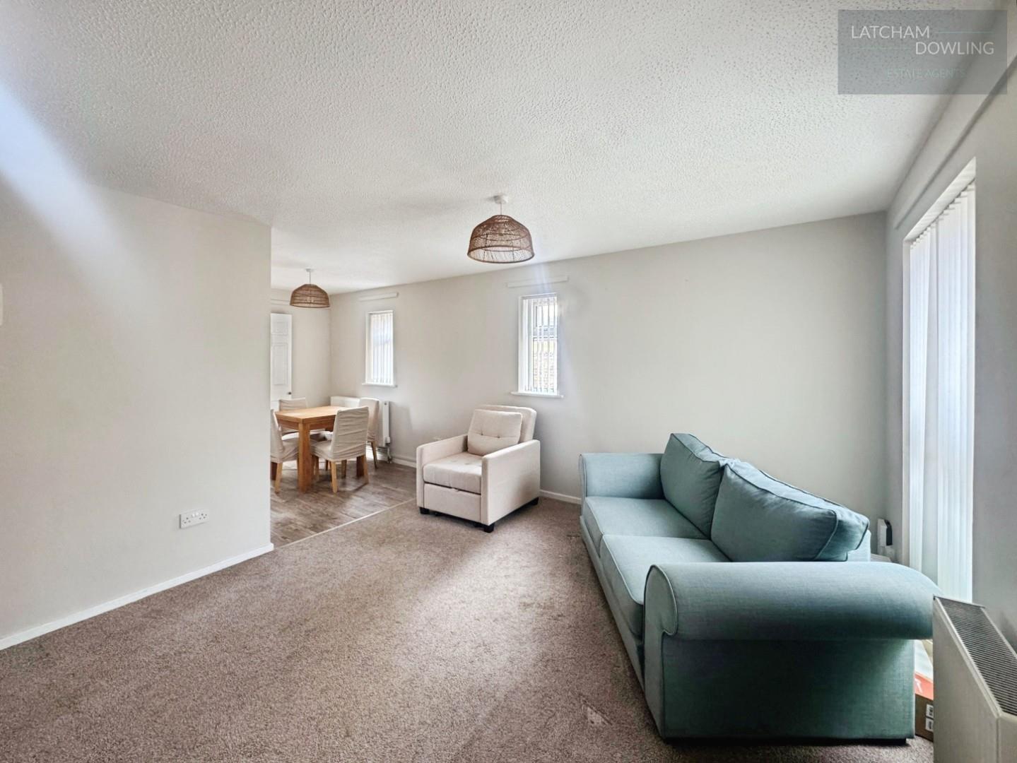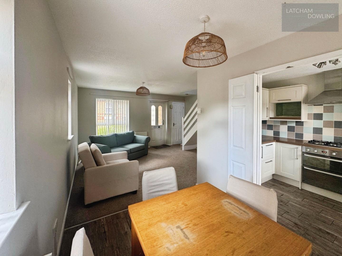 Dual aspect room with double glazed windows to front and side aspects. Radiator. Under stair recess. Stairs to first floor. Opening to dining area. Built in storage cupboard.