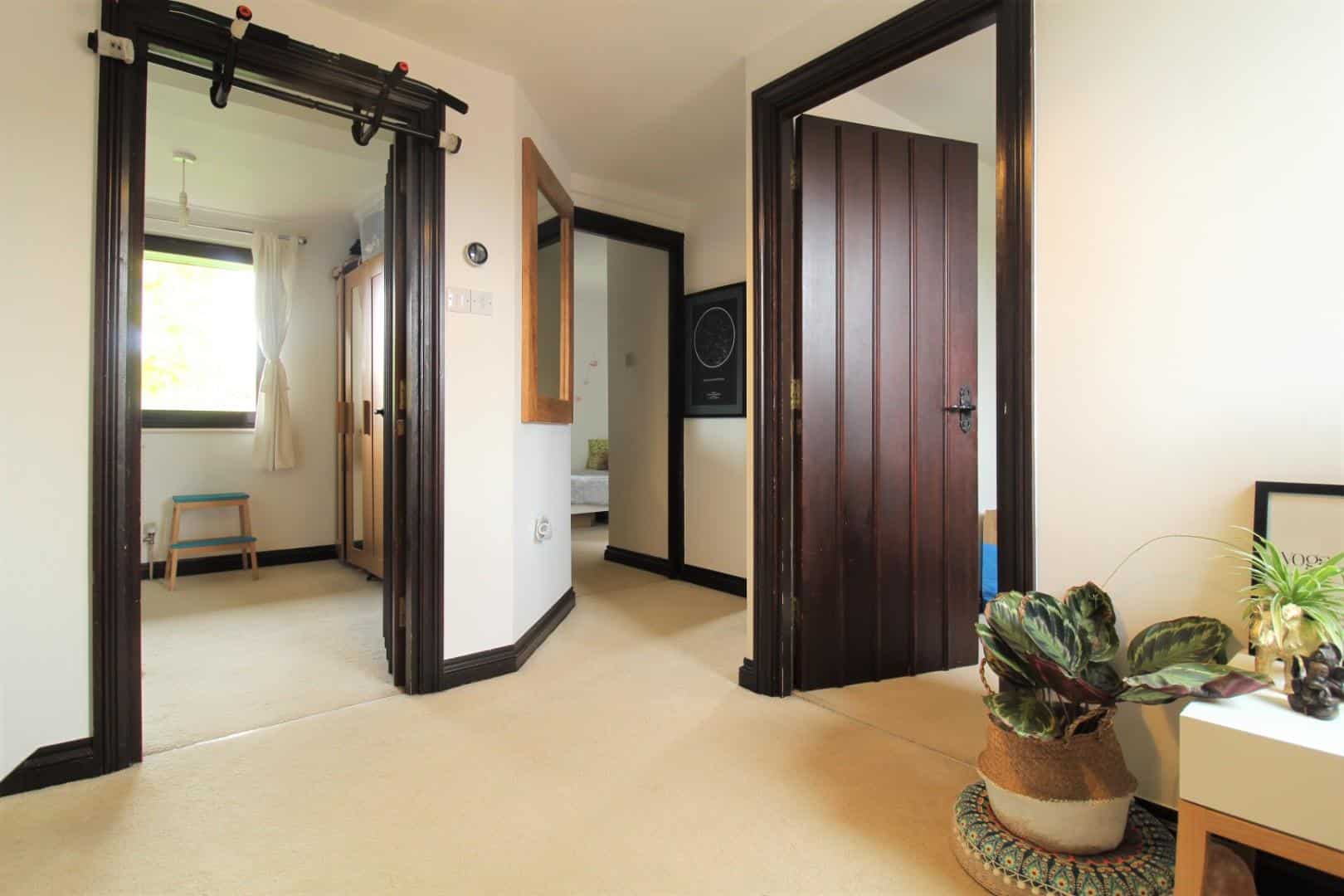 Timber doors to master bedroom suite and airing cupboard (housing hot water cylinder), hatch to loft space.