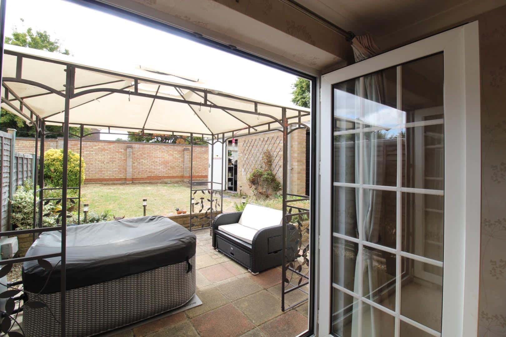 South facing garden with access via private driveway and rear french doors from lounge/diner, leads out onto an initial patio space with a laid to lawn area.