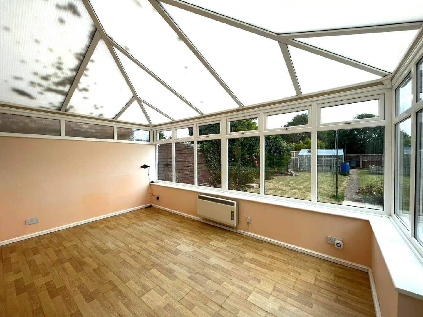 Double glazed conservatory with double “French” doors to side aspect. Wall mounted electric heater. Wood effect flooring.