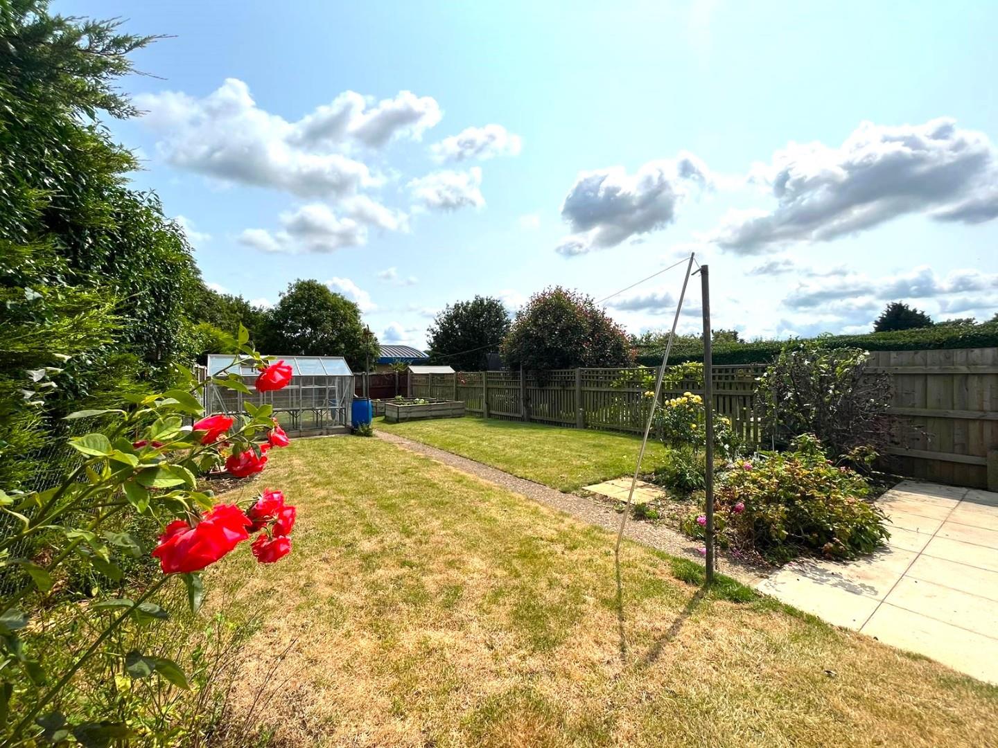 Beautiful and private rear garden that is approximately 60ft in length and laid mainly to lawn with raised flower beds with timber borders. Pathway that extends the length of the garden. Flower borders. Patio area. Courtesy door leading to garage. Door to brick built storage shed. Timber shed. Green house.