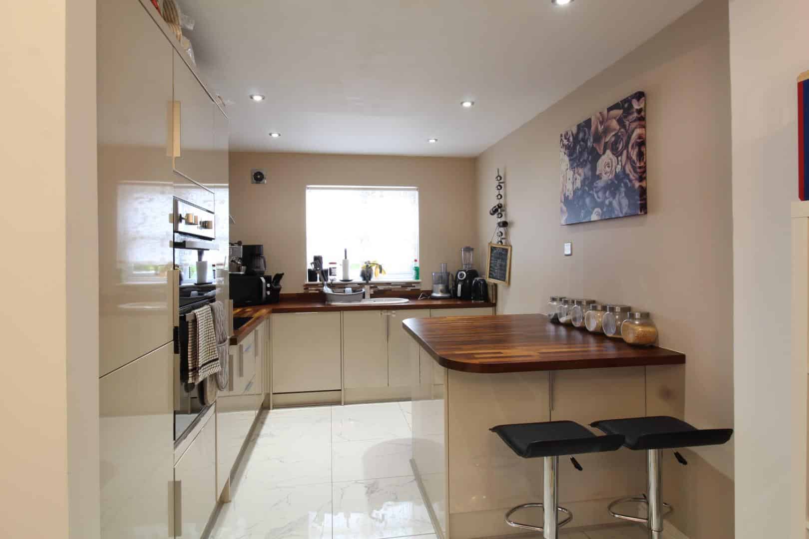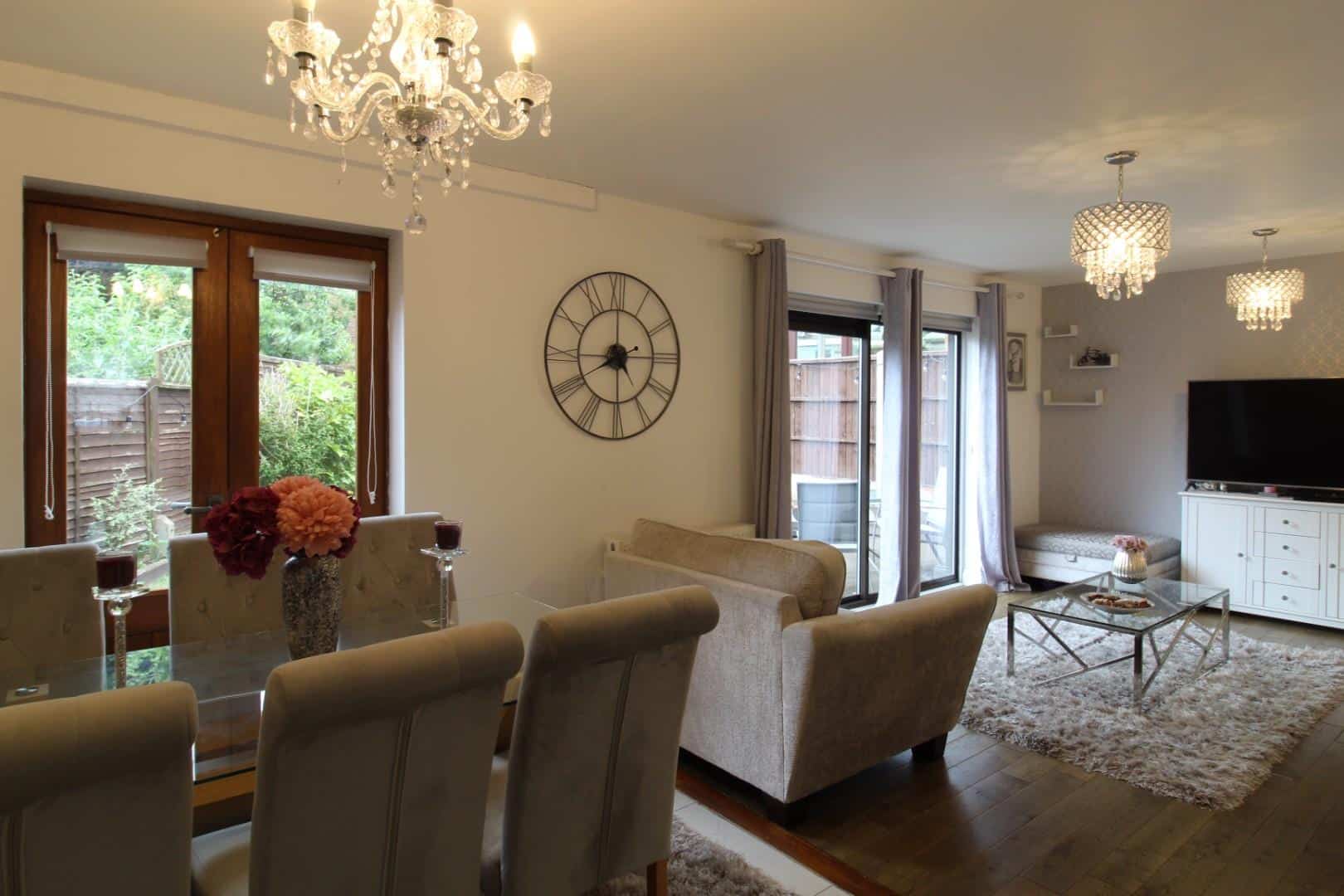 Double glazed window to front aspect and Double Glazed French doors to rear garden, Fully re-fitted kitchen with tiled flooring, built in fan oven, breakfast bar, Induction hob, built in fridge-freezer, dishwasher and washing machine.