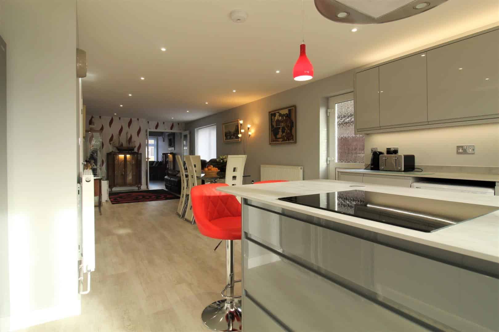 Open Plan Kitchen/ Dining/ Family Room (10.31m x 4.24m max 3.23m min (33’10 x 13’11 max 10)