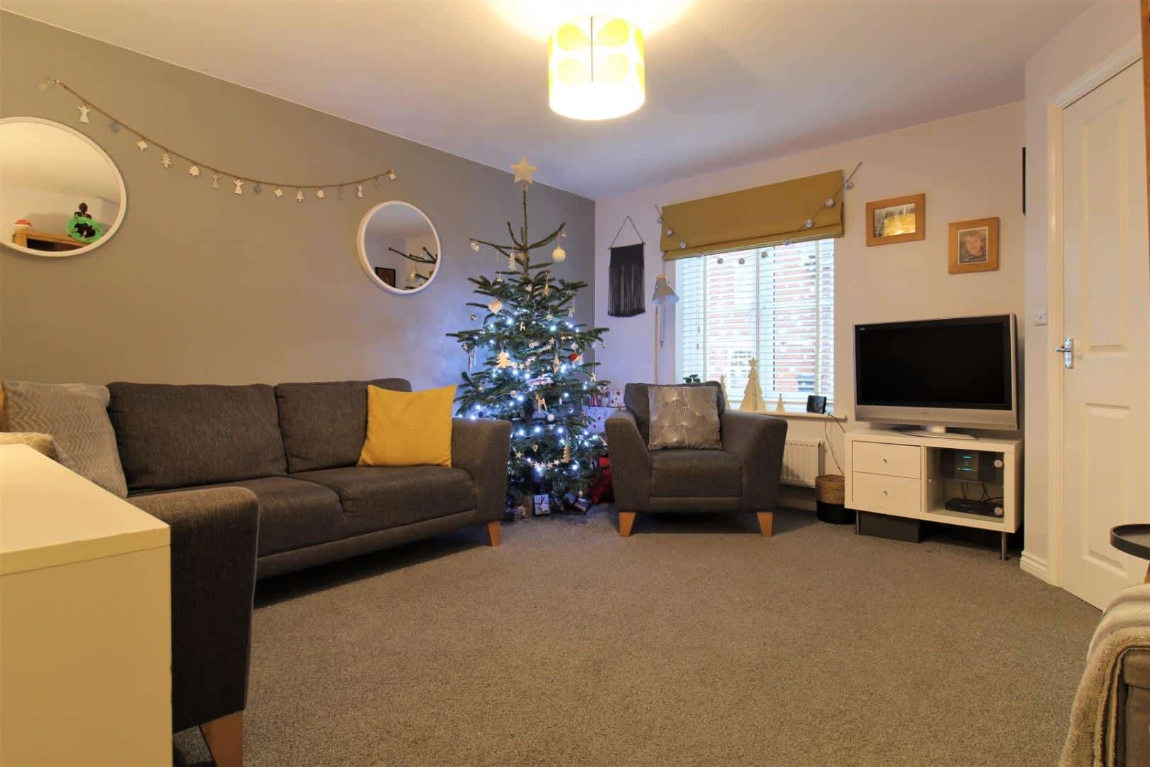 Open plan front garden laid to artificial grass with pathway to front entrance. Shared access driveway to the side of the property providing access to the carport and parking to the rear.
