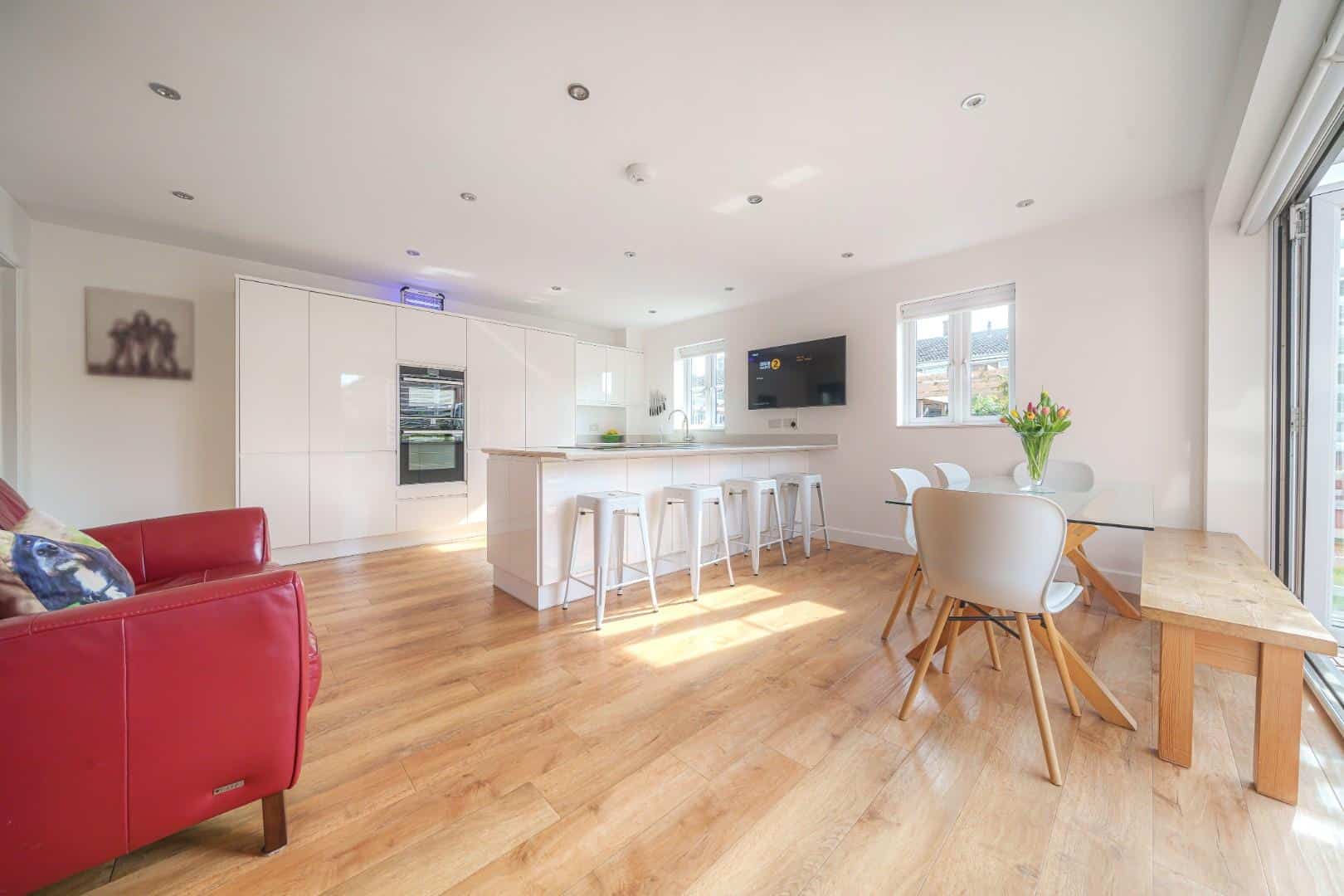 Two double glazed windows to rear aspect. Double glazed Bi-Fold doors to side aspect and leading to garden. Radiator. Rustic “Karndean” flooring. Recess spotlights. Beautifully fitted kitchen with an array of appliances including double “Neff” oven incorporating microwave. “Neff” induction hob to central Island unit with retractable extractor fan that sits flush in the Quartz worktop. Intergrated “Bosch” dishwasher. Intergrated Fridge/Freezer. Range of base and eye level units with soft close draw and cupboard function and Quartz worktops over. On demand Boiling and chilled water with an “Insinkerator” tap. Inset sink drainer with mixer taps. Door to Boot room.