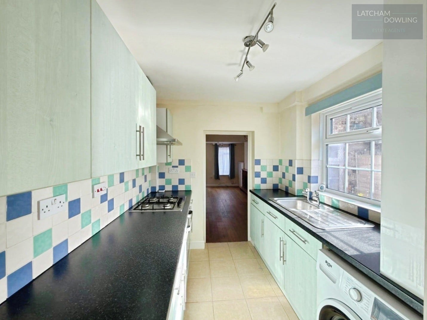 Double glazed window to side aspect. Tiled flooring. Extensive range of base and eye level units with contrasting black worktops over. Stainless steel sink/drainer. Integrated oven with new stainless steel four ring gas hob over with matching stainless steel extractor hood. Space for fridge/freezer. Washing machine. Opening to rear lobby. Cupboard housing a Worcester gas combi boiler that was fitted in April 2025 complete with Hive control system.