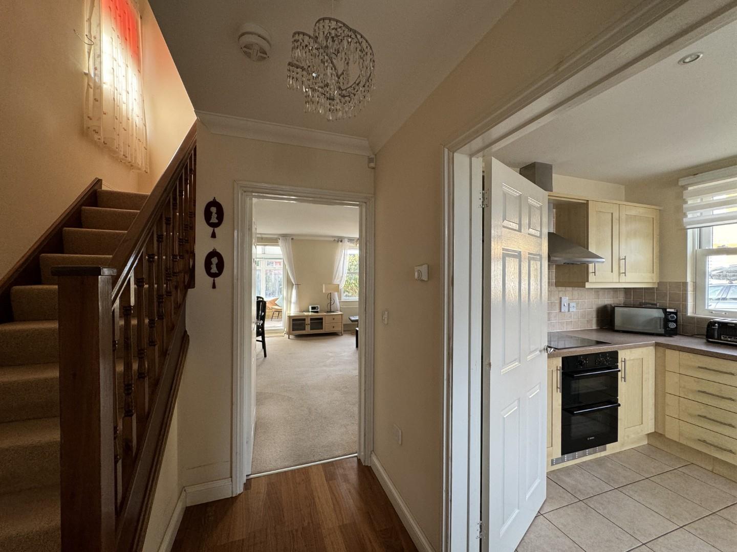 Wooden flooring. Staircase leading to first floor accommodation. Radiator. Internal doors to Kitchen/Breakfast Room, W.c and Lounge/Dining Room.