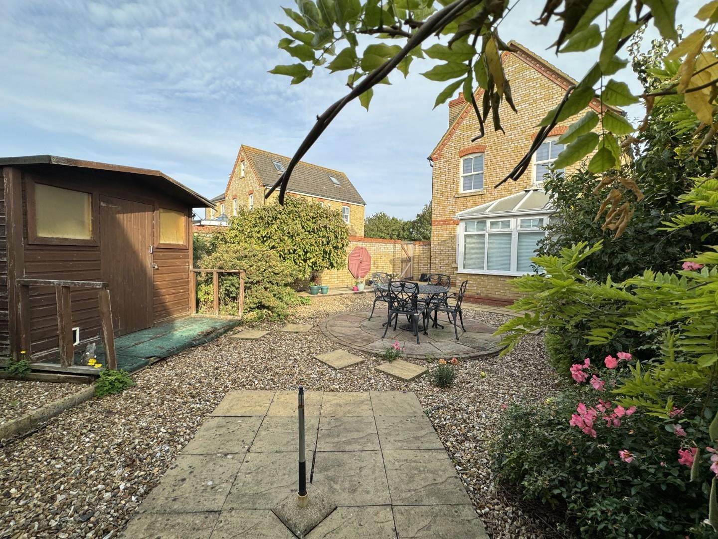 An attractive private rear South facing garden that has a patio area that leads to shingle bed with central circular patio to the middle. The garden is well stocked with plants, shrubs and fruit trees. Enclosed by brick walling. Gated side access. Decking area. Timber built shed.