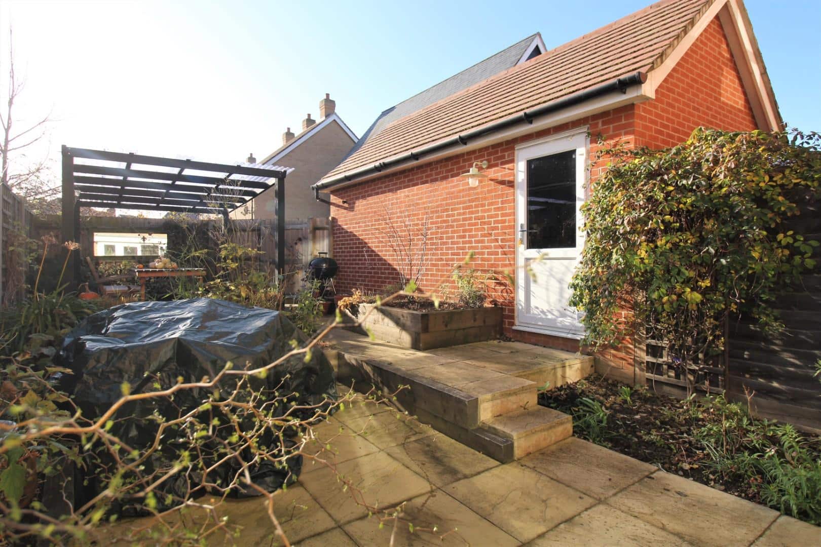 A south facing rear garden that is laid to paving with a raised patio area that extends the length of the garden. Their are raised flower beds to either side. Their is a feature enclosed pergola. There are further flower and shrub borders. Their is a personal door to the garage. There is gated access to the rear that leads to the parking area and a single garage with power and lighting.