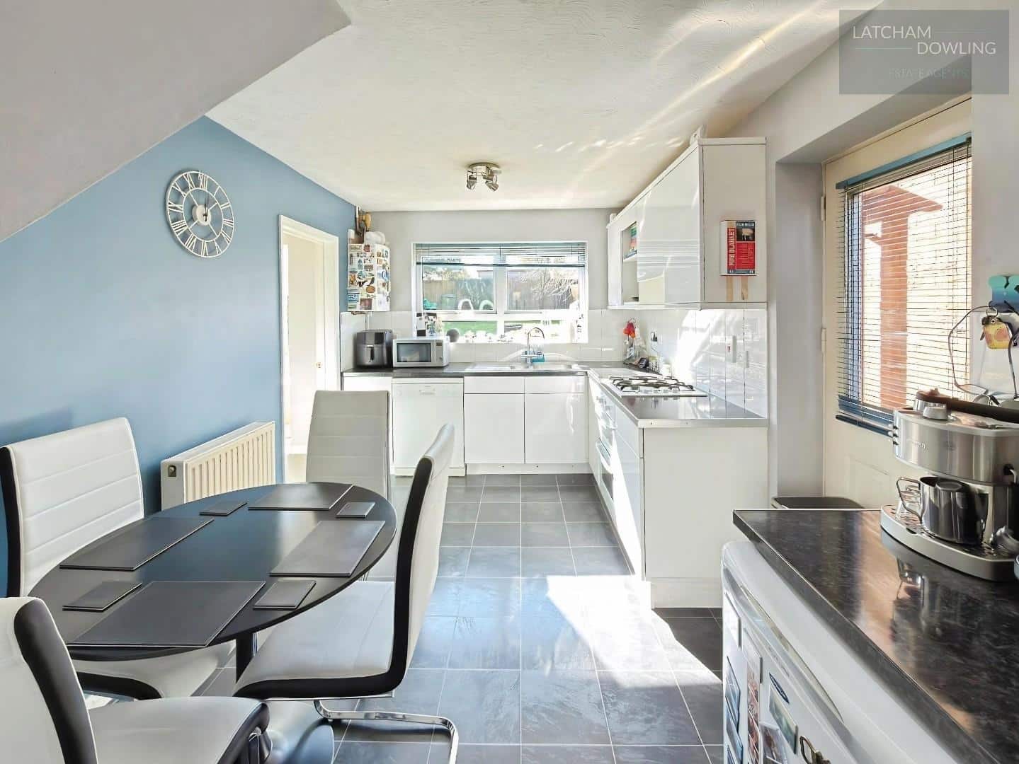 Double glazed windows to rear and side aspects. Half glazed door to side aspect. Radiator. Understairs cupboard. One and a half sink drainer with mixer taps. Extensive range of white base and eye level units with contrasting black worktops over and led lighting to floor plinths. Plumbing for dishwasher. Fitted double oven with four ring gas hob over. Internal door to dining room. Newly fitted wall mounted Worcester gas boiler.