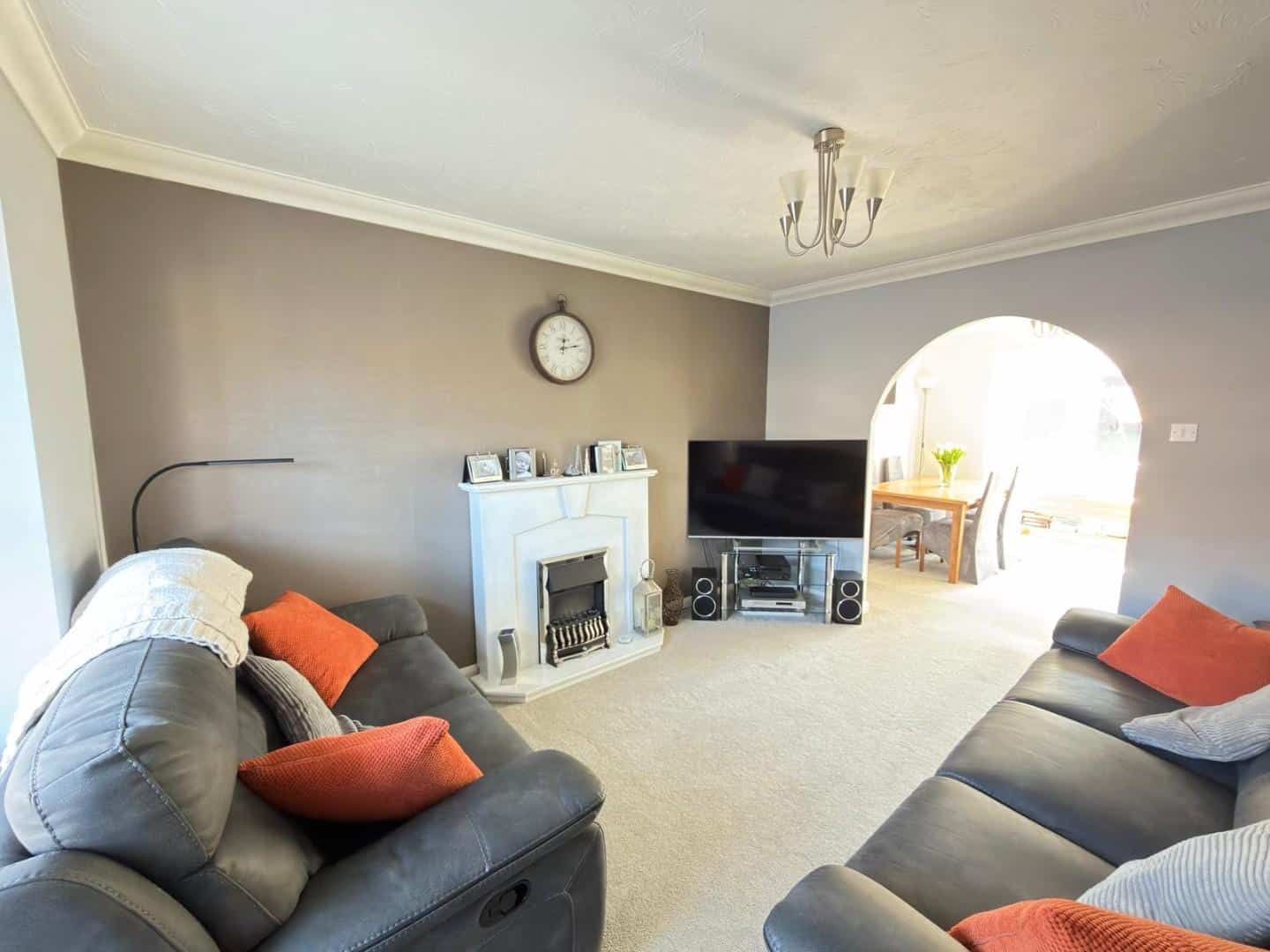 Now, this home offers great sized accommodation for the growing family. As you enter you have a hallway that leads to a large 16′ kitchen/breakfast room with an extensive range of kitchen units. Off of this you have the dining room which in turn leads to the lounge, study/playroom and summer room. The study/Playroom could (if needed) be used for a host of things including as an office but could also make for a playroom or even an additional bedroom. To the rear you have the gorgeous sun room with its pitched roof and ceiling window. This in turn leads to a truly useful utility room with its a range of storage units and currently houses a washing machine, dryer and fridge freezer. A downstairs cloakroom completes the ground floor.